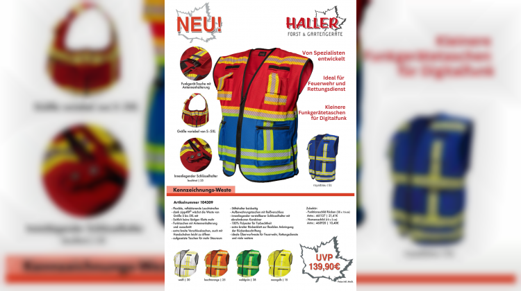 Die neue HALLER-Kennzeichnungs-Weste ist da – jetzt mit kleinerer Funkgerätetasche, speziell für kompakte Digitalfunkgeräte. Keine wackelnden Geräte mehr, kein Herumrutschen – die Tasche sitzt passgenau und sichert das Funkgerät inkl. Antenne zuverlässig.